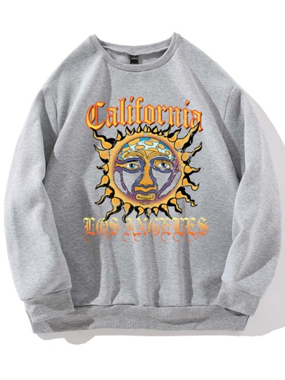 Sun And Letter Graphic Thermal Lined Sweatshirt